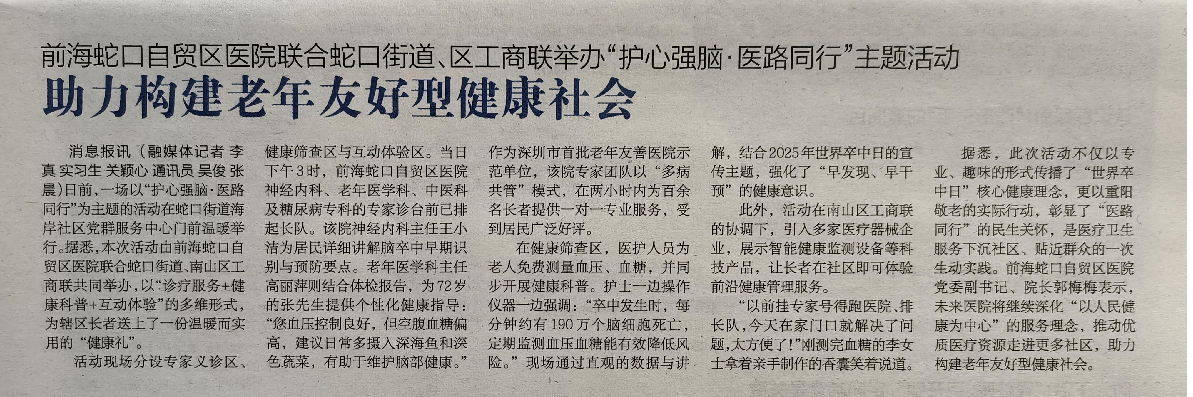 前海蛇口自贸区医院联合蛇口街道、区工商联举办“护心强脑·医路同行”主题活动 助力构建老年友好型健康社会(转自蛇口消息报20251112期A07版)