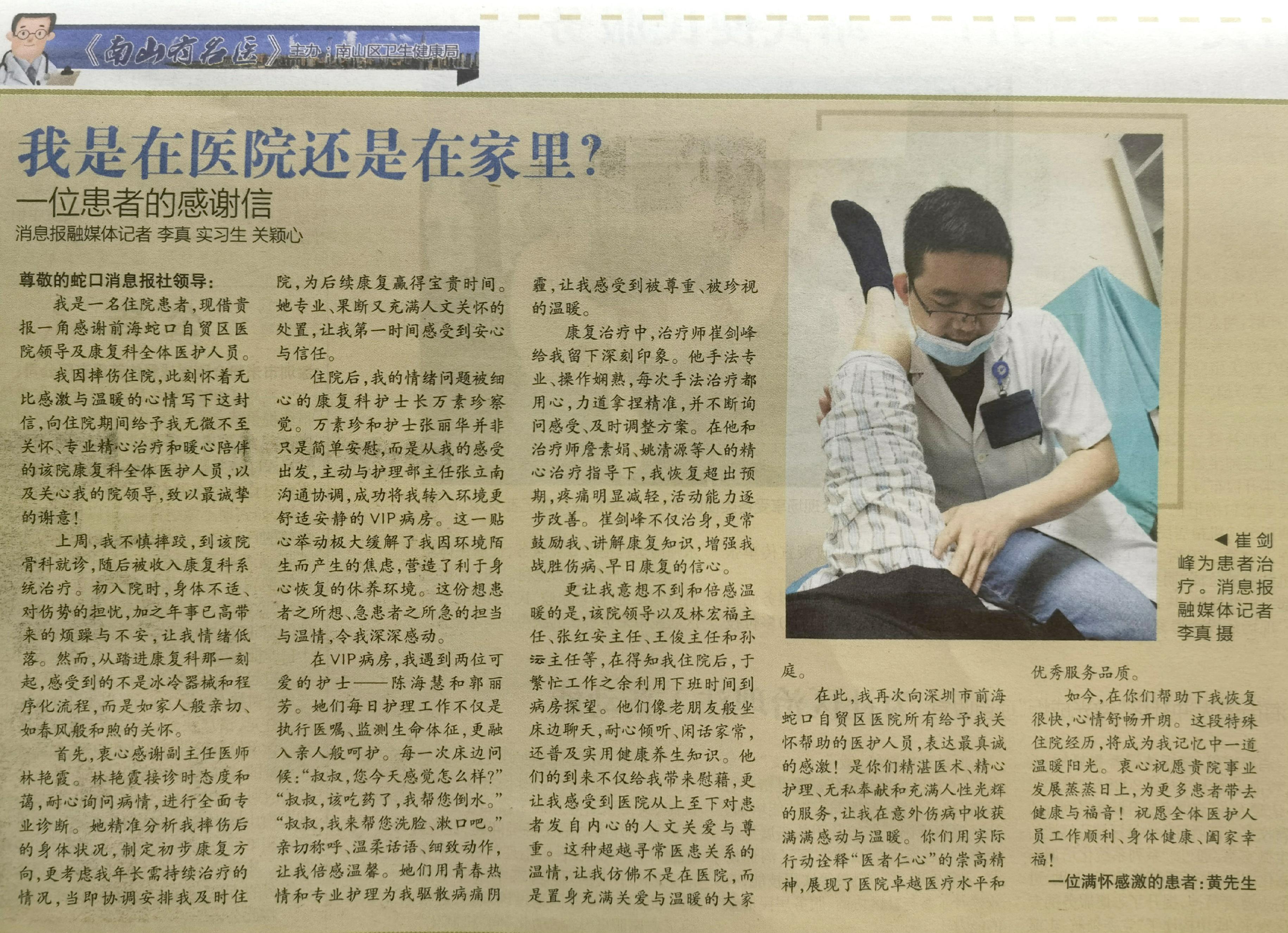我是在医院还是在家里?一位患者的感谢信(转自蛇口消息报20251211期A06版)