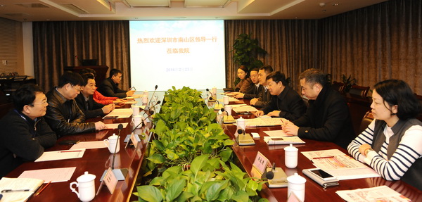 本网讯 (编辑 吴俊 通讯员 孙佳隆)日前,南山区副区长王东、深圳市卫计委副主任常巨平,蛇口医院院长黄勇跃、副院长吴文清等到中南大学湘雅二医院进行参观访问。中南大学湘雅二医院党委书记周智广、院长周胜华、副院长陈晋东以及部分职能部门负责人接待了深圳客人。