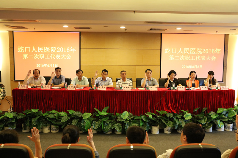 本网讯(编辑 吴俊 通讯员 孙佳隆)日前,蛇口医院召开了2016年度第二次职工代表大会。会议由工会主席王志远主持,区卫计局工会主席朱新强应邀参会,院领导班子全体成员及职工代表共98人参加。