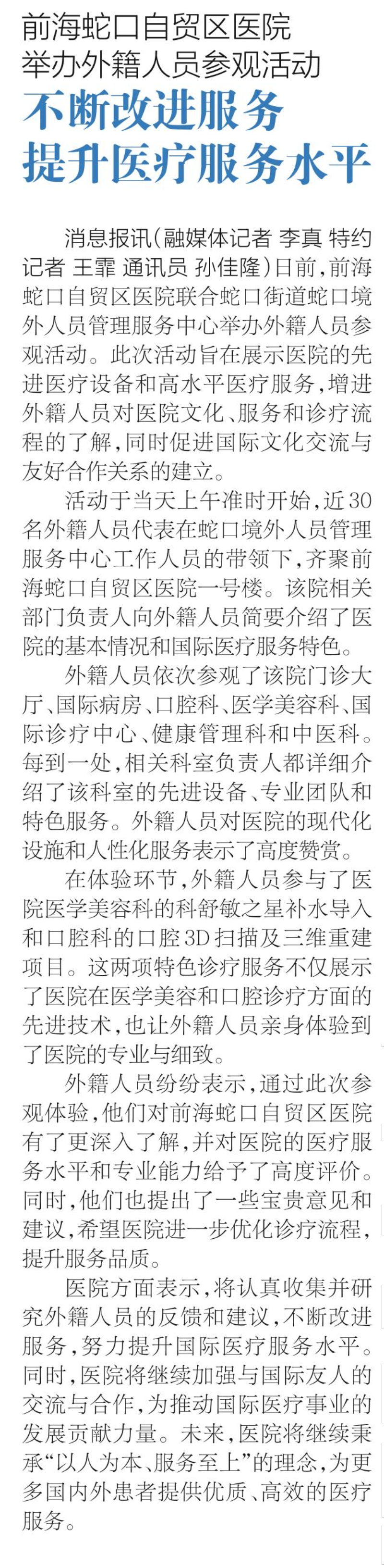 前海蛇口自贸区医院举办外籍人员参观活动 不断改进服务 提升医疗服务水平(转自蛇口消息报20241024期A07版)