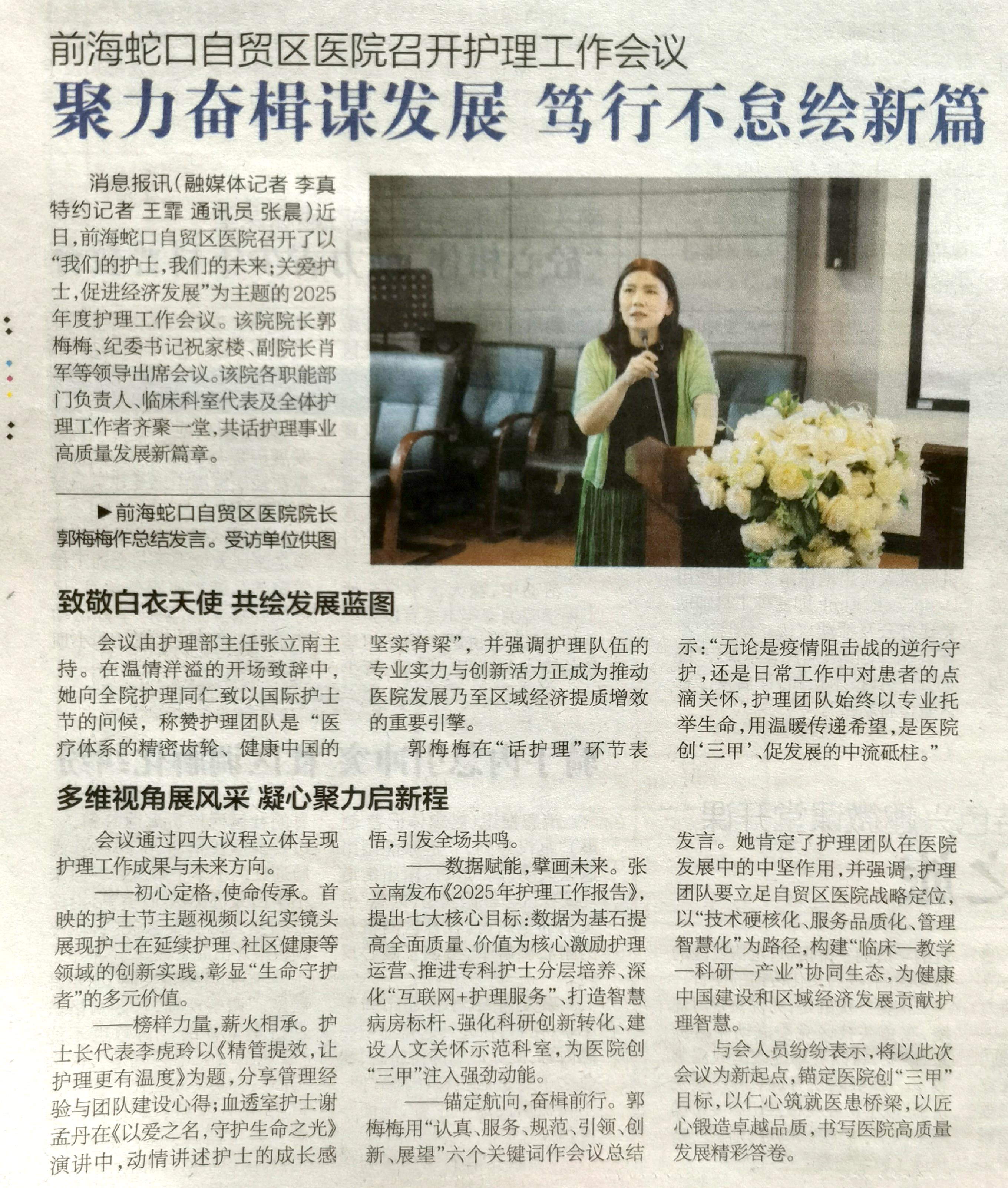 前海蛇口自贸区医院召开护理工作会议 聚力奋楫谋发展 笃行不怠绘新篇(转自蛇口消息报20250514期A06版)