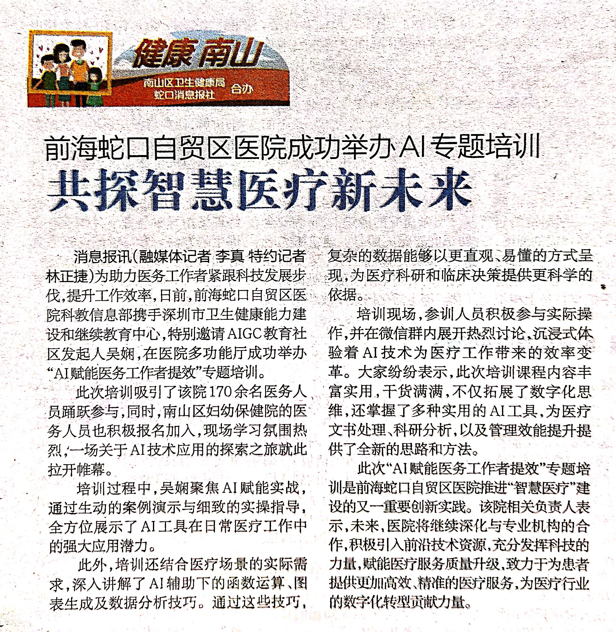 前海蛇口自贸区医院成功举办AI专题培训 共探智慧医疗新未来(转自蛇口消息报20250515期A06版)